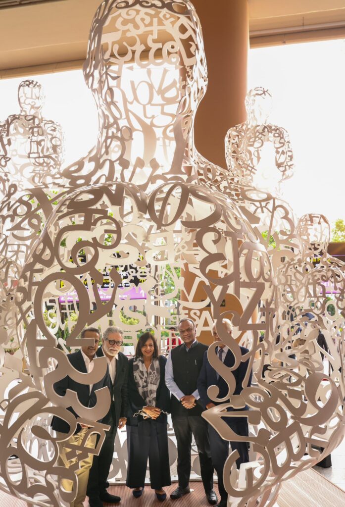 Bengaluru’s Soul”, designed by the acclaimed artist Jaume Plensa unveiled at Kempegowda International Airport Bengaluru by H.E. Juan Antonio March Pujol, Ambassador of Spain to India, with the other digniatries Priyank Kharge, Minister for Rural Development, Panchayat Raj, and Information Technology & Biotechnology Govt of Karnataka, Kiran Mazumdar-Shaw, Chairperson, Biocon Group, and Hari Marar, Managing Director & CEO, Bangalore International Airport Limited (BIAL), with the artist Jaume Plensa.