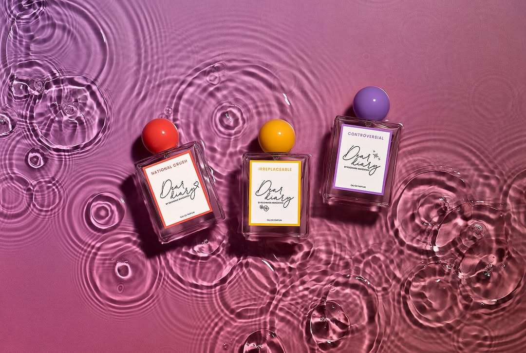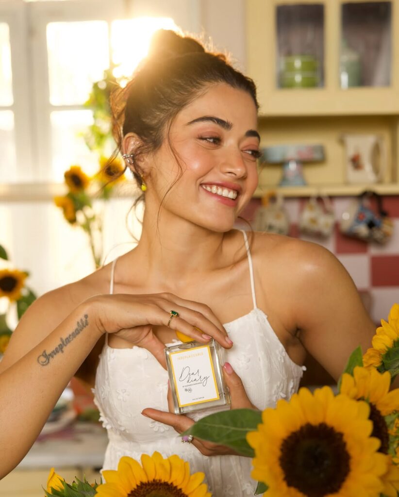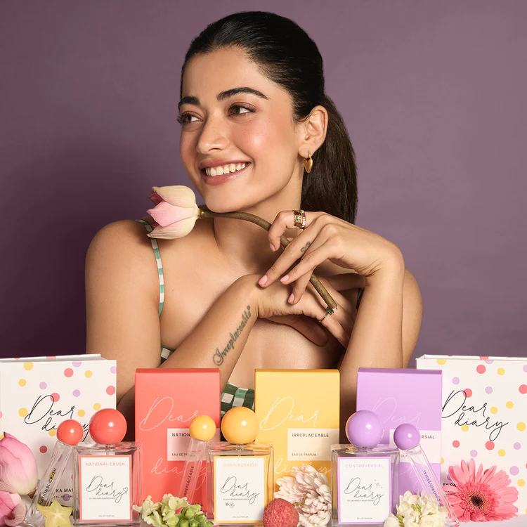 National Crush Rashmika Mandanna launches her own perfume brand “Dear Dairy” with 3 sets named after her career life National Crush, Controversial, and Irreplaceable.